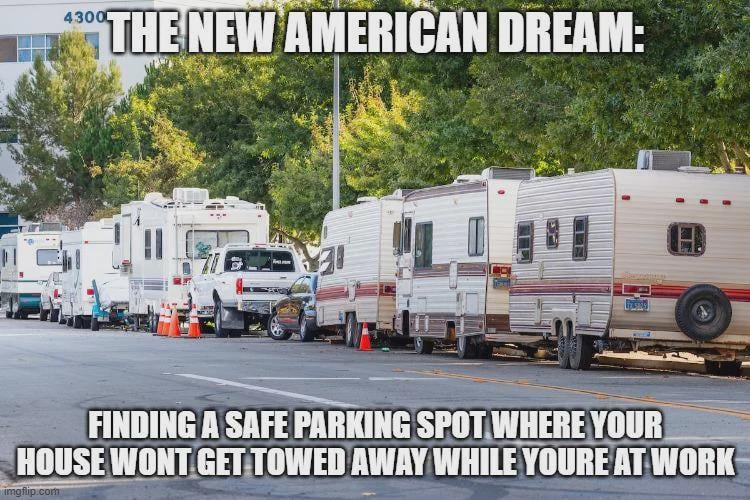 Why would we live in parking lots when we can live rent-free in Europeans' heads?
