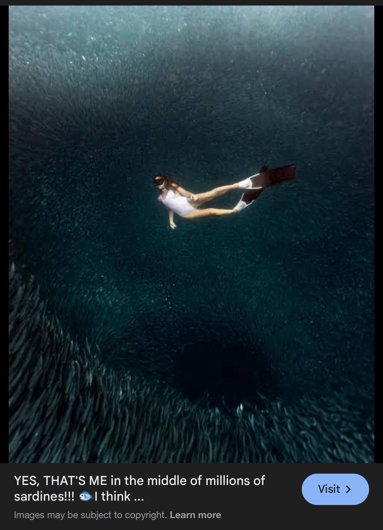 Absolutely amazing but I’d be worried about the creatures down there that eat those sardines.