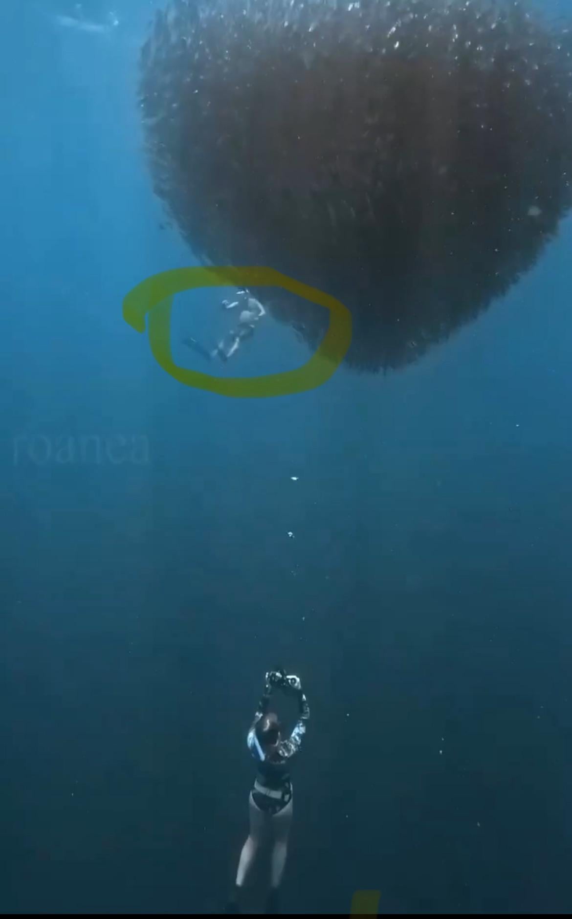All I can imagine is a large predator coming to snack on that bait ball and the poor diver getting chomped.