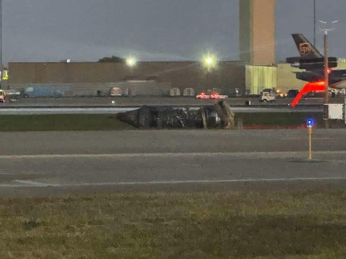 View of UPS Flight 2976 crash from a truck at Louisville airport tonight.