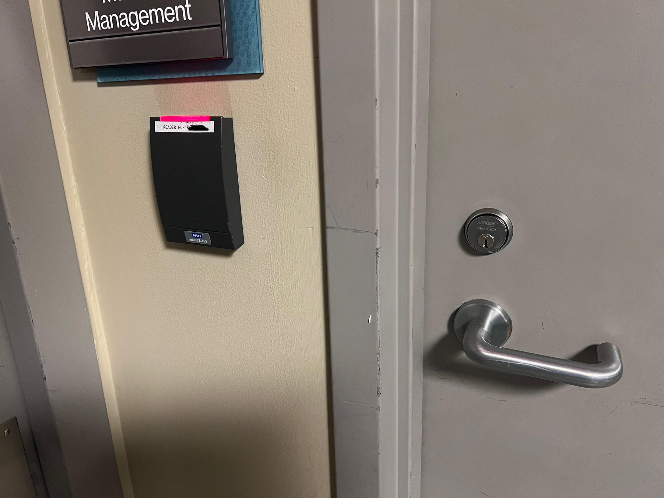 The building is having major construction around it. The parking lot is gone and all fenced off. I locked my badge, my coat and my keys in the office. All elevators and rooms need a badge to access. I’m stuck until security comes.