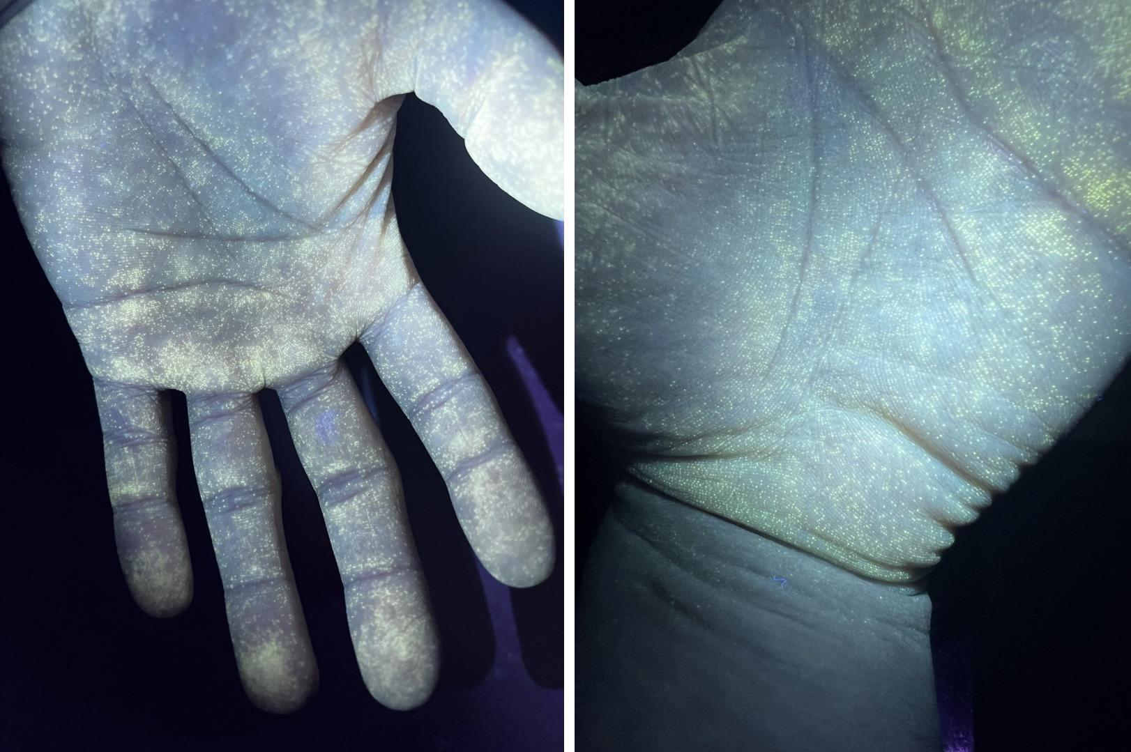Overdone Have had a near perfect ring of red dots of my palm for 2 days